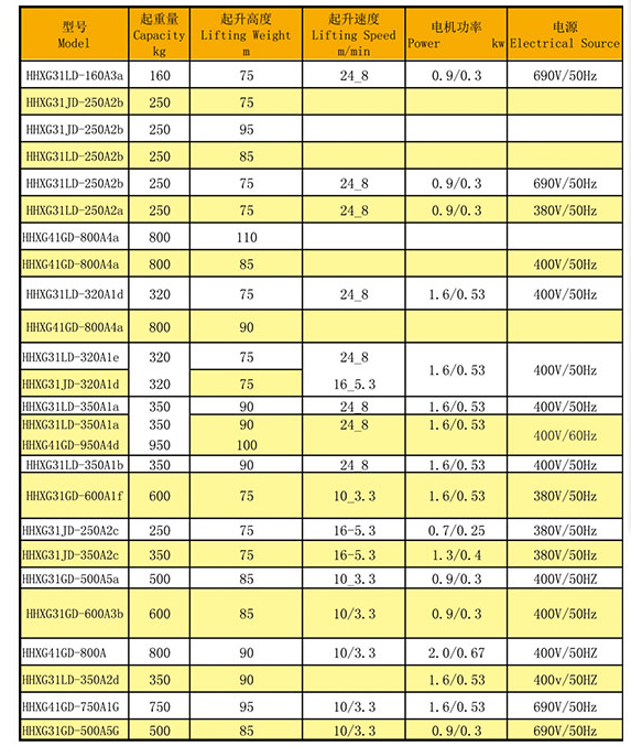 风电葫芦 HHXG型 0.16T-0.95T参数图