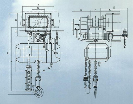 环链链条采用高强度表面渗碳校准链条,耐磨损、耐腐蚀、最小破断应力大于800N/mm2,安全系数8倍以上,机构工作级别M4,所有电气元件均符合IEC标准。