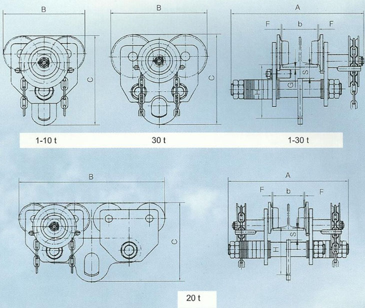 手链单轨小车又叫手拉葫芦跑车,手拉跑车分为两大类:1普通型手拉跑车,2防撞型手拉跑车。行走承载能力0.5T-30T,其作用于工字钢上左右行走。主要适用于:手拉葫芦、环链电动葫芦的吊点配合可组成起重运输方面的四位要求。广泛用于无电源的工作环境、汽车发动机的安装就位和货物的搬运。