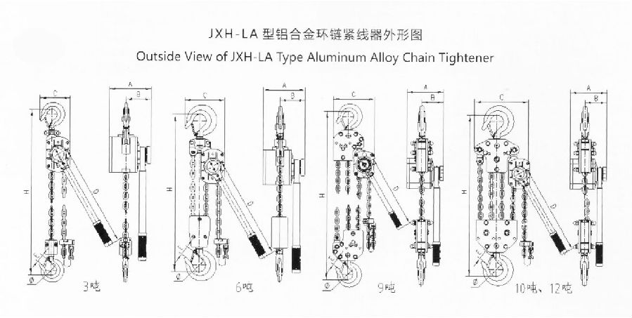 JXH-L型铝合金环手扳葫芦(紧线器)参照国外先进国家的同类产品设计制造,其主要零件均选用优质材料制造,在设计与使用上具有以下特点: