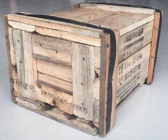正品1吨飞鸽手拉了外包装箱如图所示,它的正面有手拉葫芦品牌、吨位、净重、毛重、箱体尺寸、公司名称等内容的标识,您可以通过上述内容的齐全程度进行真伪判断。